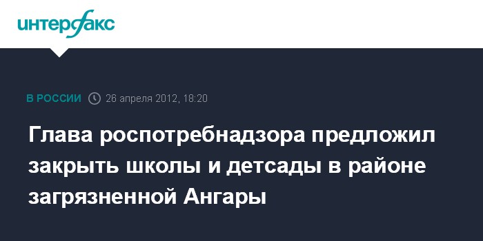 Москва. 26 апреля. INTERFAX.RU - Российская санитарная служба просит закрыть все школы и детские сады в городах Иркутской области, где объявлен режим чрезвычайной ситуации из-за загрязнения нефтепродуктами водозабора на реке Ангара.