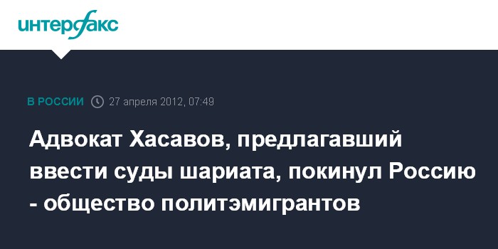 Адвокат Хасавов, предлагавший ввести суды шариата, покинул Россию - общество политэмигрантов
