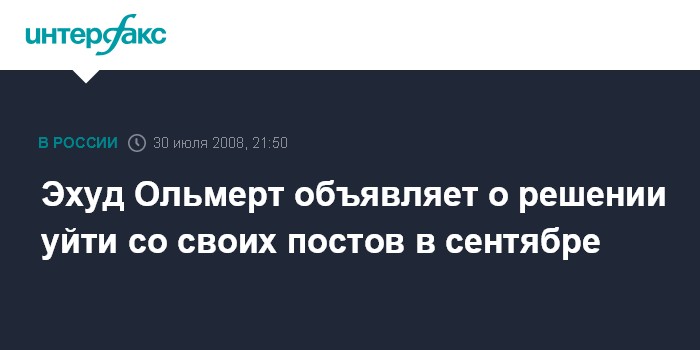 Эхуд Ольмерт объявляет о решении уйти со своих постов в сентябре
