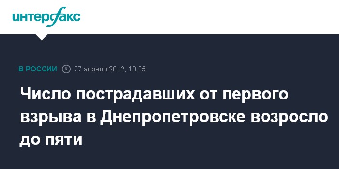 Днепропетровск. 27 апреля. INTERFAX.RU - В результате взрыва в мусорном баке рядом с остановкой "Оперный театр" в центре Днепропетровска пострадали пять человека.