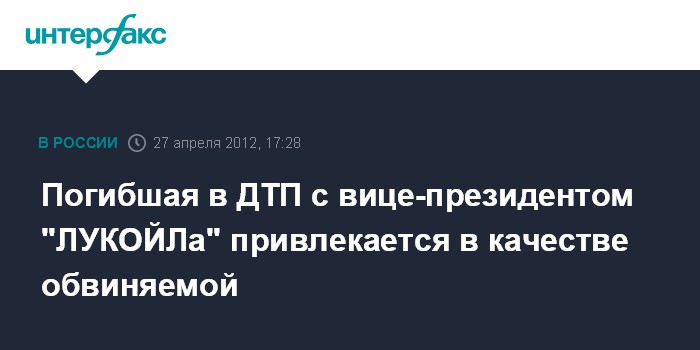 Погибшая в ДТП с вице-президентом "ЛУКОЙЛа" привлекается в качестве обвиняемой