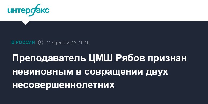 Москва. 27 апреля. INTERFAX.RU - Присяжные в Мосгорсуде признали невиновным преподавателя фортепиано Центральной музыкальной школы при Московской государственной консерватории им. Чайковского Анатолия Рябова по делу о педофилии, передает корреспондент "Интерфакса".