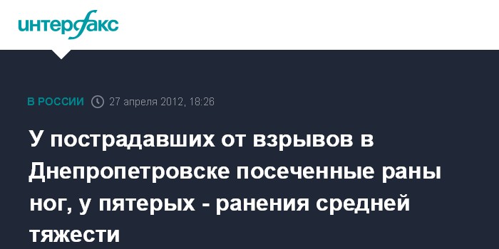 У пострадавших от взрывов в Днепропетровске посеченные раны ног, у пятерых - ранения средней тяжести