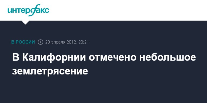Вашингтон. 28 апреля. INTERFAX.RU - Землетрясение магнитудой 4,1 произошло в субботу на юге американского штата Калифорния, сообщает американский телеканал Fox News.