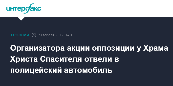 Москва. 29 апреля. INTERFAX.RU - Организатора акции оппозиции, проходящей возле Храма Христа Спасителя, Романа Доброхотова принудительно препроводили в полицейский автомобиль. Как передает корреспондент "Интерфакса", к Р.Доброхотову подошел полковник полиции в сопровождении четырех полицейских и заявил, что тому нужно пройти с ними в полицейский автомобиль "для беседы". Когда Р.Доброхотов отказался, его препроводили к полицейскому автомобилю.