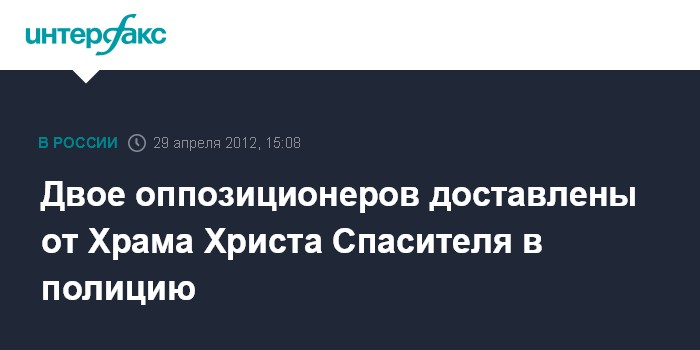 Москва. 29 апреля. INTERFAX.RU - Днем в воскресенье в Москве полиция задержала у Храма Христа Спасителя сторонника оппозиции, устроившего потасовку с одним из активистов "Союза хоругвеносцев".