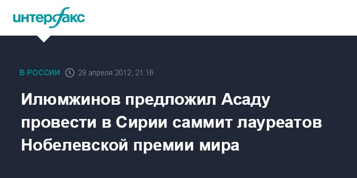 Дамаск. 29 апреля. ИНТЕРФАКС - Президент ФИДЕ Кирсан Илюмжинов предлагает провести в Сирии саммит лауреатов Нобелевской премии мира.