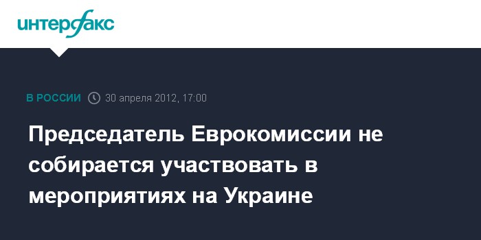 Брюссель. 30 апреля. INTERFAX.RU - Глава Еврокомиссии Жозе Мануэл Баррозу не намерен принимать участие ни в каких мероприятиях на Украине, в том числе и в рамках чемпионата Европы по футболу. "Глава Еврокомиссии в настоящее время не собирается приезжать на Украину или участвовать в мероприятиях на Украине", - сообщила в понедельник его представитель Пия Арнекильда Хансен.