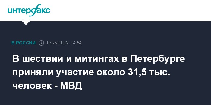 Санкт-Петербург. 1 мая. INTERFAX.RU - Полицейские не зафиксировали серьезных нарушений общественного порядка в ходе первомайского митинга и шествий в Петербурге, сообщили "Интерфаксу" в пресс-службе Главного управления МВД по Петербургу и Ленинградской области. "Всего в шествии и митингах приняли участие 31,5 тыс. человек", - сказал собеседник агентства.