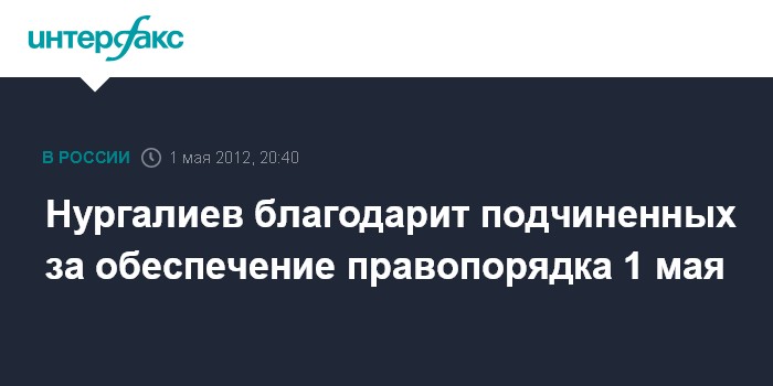 Москва. 1 мая. INTERFAX.RU - Министр внутренних дел РФ Рашид Нургалиев поблагодарил личный состав за работу по обеспечению общественного порядка во время массовых акций, приуроченных ко Дню весны и труда, сообщили "Интерфаксу" в пресс-центре МВД РФ.