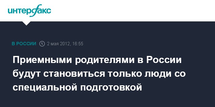 Москва. 2 мая. INTERFAX.RU - Приемными родителями с сентября этого года смогут стать только те, кто прошел специальную подготовку.