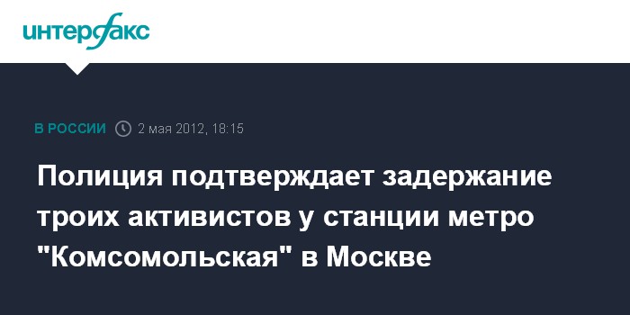 Полиция подтверждает задержание троих активистов у станции метро "Комсомольская" в Москве