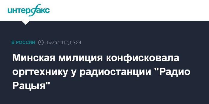 Минск. 3 мая. ИНТЕРФАКС-ЗАПАД - Минская милиция в среду вечером конфисковала оргтехнику у не аккредитованных в Белоруссии журналистов радиостанции "Радио Рацыя", сообщают белорусские интернет-ресурсы.