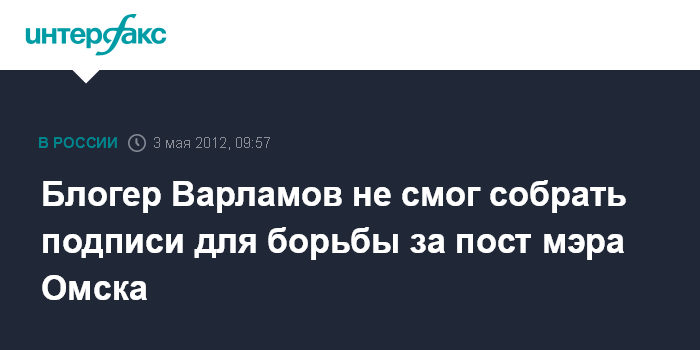 "К сожалению, мы не смогли собрать подписей. Мы не получили приглашения от жителей Омска и это нормально. Уверен, омичи выберут достойного мэра, который будет заниматься городом", - пишет Варламов в своем блоге.