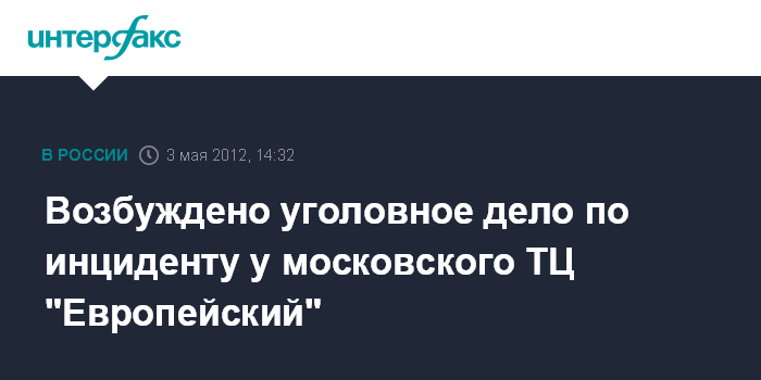 Москва. 3 мая. INTERFAX.RU - Московская полиция возбудила уголовное дело по статье о хулиганстве в связи с потасовкой возле торгового центра "Европейский", видеозапись которой была размещена в интернете и вызвала большой общественный резонанс.