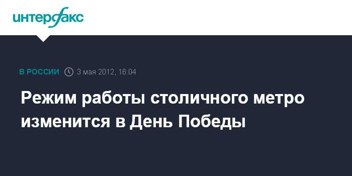 Москва. 3 мая. INTERFAX.RU - В связи с проведением 9 мая на Красной площади военного парада, а также массовых мероприятий изменится режим работы Московского метрополитена, сообщили "Интерфаксу" в пресс-службе "подземки" в четверг.