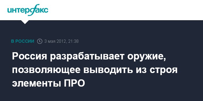 "Наука и техника шагнули так далеко, что можно нарушать (функционирование - ИФ-АВН) огромное количество элементов ПРО, не прибегая к их физическому разрушению. Эти средства в Российской Федерации также разрабатываются", - сказал Макаров на конференции по ПРО в Москве.