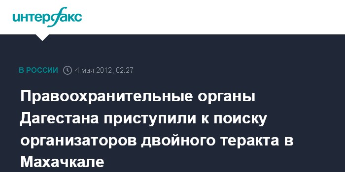 Ростов-на-Дону. 4 мая. ИНТЕРФАКС-ЮГ - Подразделения полиции и других силовых структур Дагестана проводят поисковые мероприятия по установлению личностей организаторов двойного теракта в Махачкале, сообщил агентству "Интерфакс-Юг" источник в правоохранительных органах в пятницу.