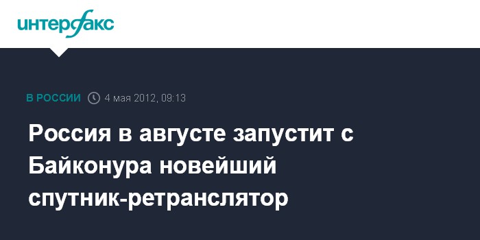 Россия в августе запустит с Байконура новейший спутник-ретранслятор