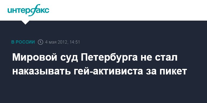 Мировой суд Петербурга не стал наказывать гей-активиста за пикет
