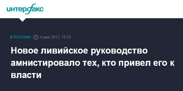 Лондон. 4 мая. INTERFAX.RU - Правящий в Ливии Национальный переходный совет освободил от уголовного преследования всех, кто боролся за свержение режима Муамара Каддафи. "Не будет никакого наказания за действия, которые были продиктованы революцией 17 февраля", - говорится в заявлении совета, которое цитирует в пятницу газета Guardian.