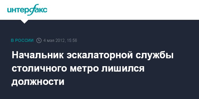 Как сообщил в пятницу "Интерфаксу" источник в администрации метрополитена, своей должности лишился начальник эскалаторной службы Александр Икенькин. "Икенькина не увольняли из метрополитена, как сообщали некоторые СМИ. Он занял должность заместителя начальника эскалаторной службы по реконструкции", - сказал собеседник агентства.