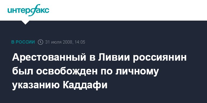 Арестованный в Ливии россиянин был освобожден по личному указанию Каддафи
