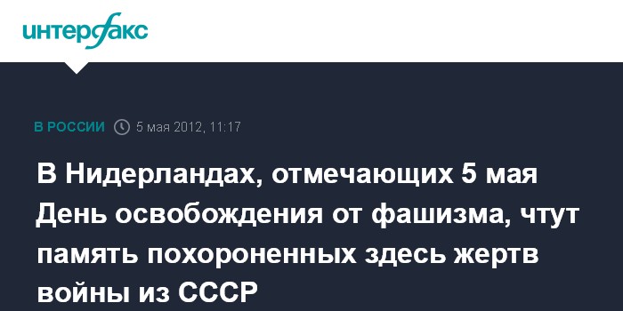 В Нидерландах, отмечающих 5 мая День освобождения от фашизма, чтут память похороненных здесь жертв войны из СССР