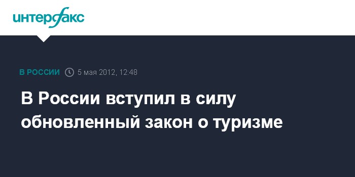 Москва. 5 мая. INTERFAX.RU - Федеральный закон "О внесении изменений в Федеральный закон "Об основах туристской деятельности в Российской Федерации" и отдельные законодательные акты Российской Федерации" вступил в силу в субботу, сообщает Ростуризм.