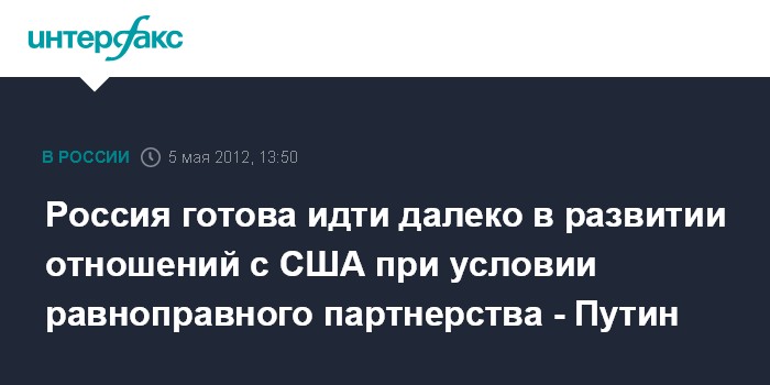 По его словам, В.Путин в этом же русле подчеркнул, что "в развитии отношений с Америкой Россия готова идти действительно далеко, при условии, что американцы на деле будут руководствоваться принципами равноправного и взаимоуважительного партнерства".