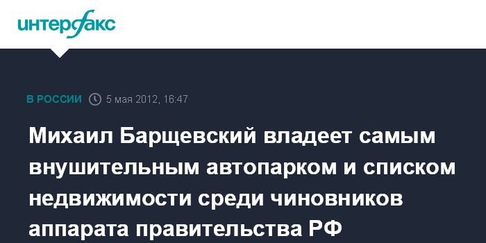Самым внушительным списком объектов недвижимого имущества, согласно сведениям о доходах, обладает полпред правительства в Конституционном, Верховном и Высшем Арбитражном судах Михаил Барщевский. Вместе с супругой они владеют более чем десятком земельных участков площадью от нескольких десятков до нескольких тысяч квадратных метров, пятью жилыми домами и четырьмя квартирами. У супругов Барщевских и самый большой автомобильный парк, состоящий из двух "Мерседесов", "Лексуса", "Форда", "Хаммера", ВАЗа и "Дэу Нексия".