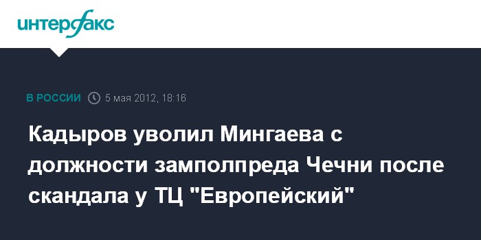Кадыров уволил Мингаева с должности замполпреда Чечни после скандала у ТЦ "Европейский"