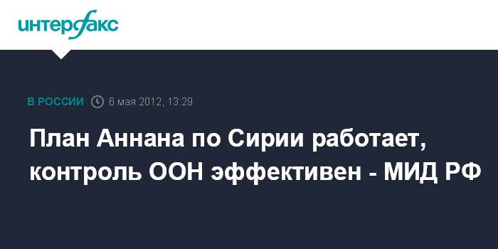 План Аннана по Сирии работает, контроль ООН эффективен - МИД РФ