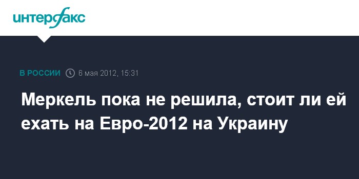 Берлин. 6 мая. INTERFAX.RU - Канцлер ФРГ Ангела Меркель еще не приняла решение о том, стоит ли ей отказаться от поездки на Украину на Чемпионат Европы по футболу, чтобы выразить протест в связи с ситуацией вокруг экс-премьера Юлии Тимошенко, передает в воскресенье агентство ЭФЭ.