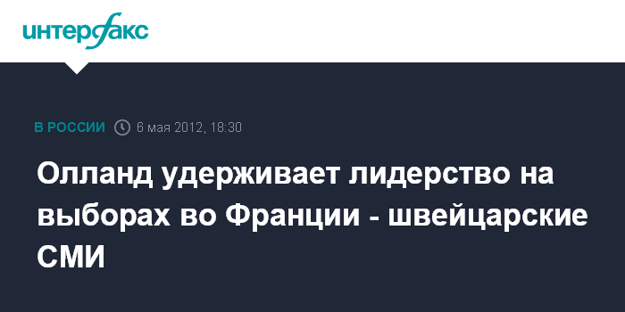Ранее в воскресенье СМИ Швейцарии уже сообщали о том, что Ф.Олланд лидирует на выборах.