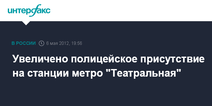 Москва. 6 мая. INTERFAX.RU - Полиция отправила дополнительные силы на станцию метро "Театральная" после драки и последующего задержания лидера националистов Дмитрия Демушкина. Как передает корреспондент "Интерфакса", на платформу прибыли дополнительные силы полиции.