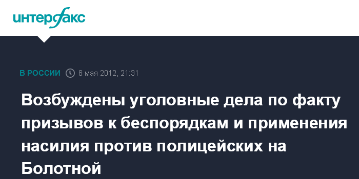 Возбуждены уголовные дела по факту призывов к беспорядкам и применения насилия против полицейских на Болотной