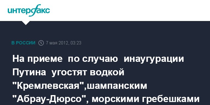 На приеме по случаю инаугурации Путина угостят водкой "Кремлевская",шампанским "Абрау-Дюрсо", морскими гребешками и кетовой икрой