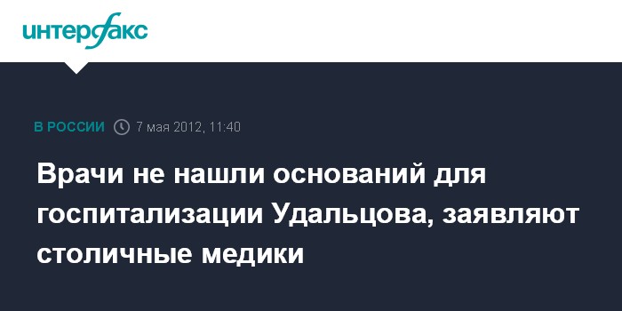 "С.Удальцову были проведены все необходимые обследования, никаких показаний для госпитализации обнаружено не было", - сказал представитель департамента.