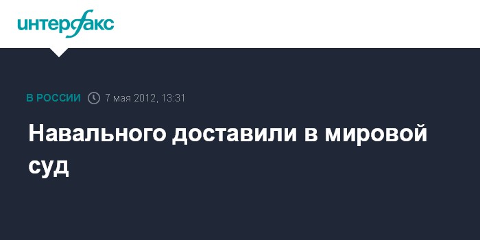 Москва. 7 мая. INTERFAX.RU - Оппозиционера Алексея Навального, задержанного накануне во время акции оппозиции, доставили в 396 мировой судебный участок района Якиманка, передает корреспондент "Интерфакса".