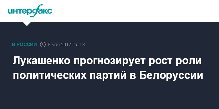 Минск. 8 мая. INTERFAX.RU - Президент Белоруссии Александр Лукашенко заявил об усилении роли политических партий в общественно-политической жизни страны, но подчеркивает длительность срока перехода постсоветской страны к гражданскому обществу. "Очевидно, что будет усиливаться роль политических партий. Мы должны придти к цивилизованной партийной системе", - сказал президент, выступая во вторник с посланием белорусскому народу и парламенту.