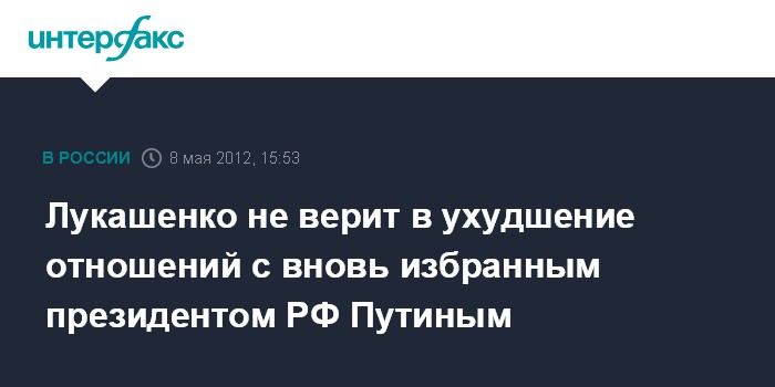 Лукашенко не верит в ухудшение отношений с вновь избранным президентом РФ Путиным