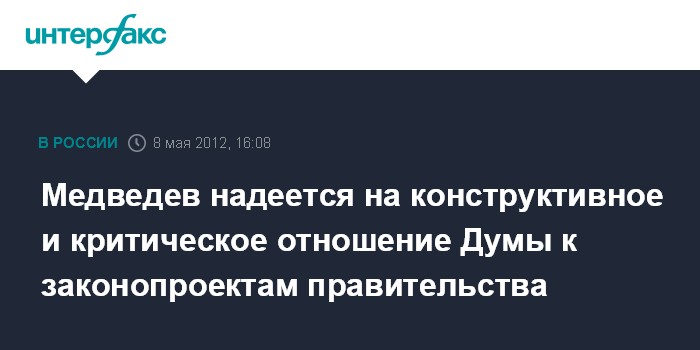 Медведев надеется на конструктивное и критическое отношение Думы к законопроектам правительства