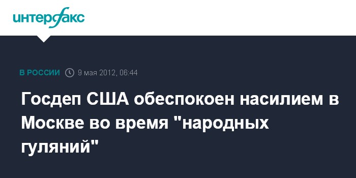 Москва. 9 мая. ИНТЕРФАКС - Пресс-секретарь Госдепартамента США Марк Тонер выразил озабоченность сообщениями о насилии в Москве во время протестных выступлений 6 мая и арестами, которые производятся последние три дня.
