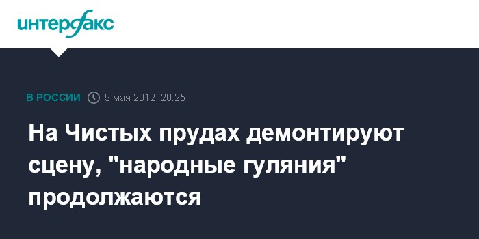 Москва. 9 мая. INTERFAX.RU - Концерт, посвященный празднику Победы на Чистых прудах, завершился, начался демонтаж сцены.