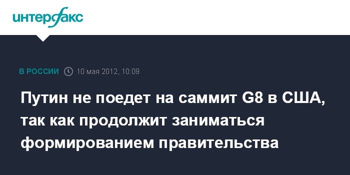 Путин не поедет на саммит G8 в США, так как продолжит заниматься формированием правительства