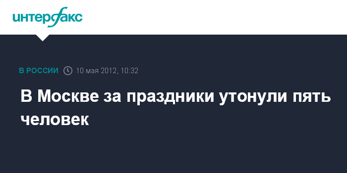 Москва. 10 мая. INTERFAX.RU - На открытых водоемах столицы с 7 по 9 мая утонули пять человек, сообщил "Интерфаксу" источник в медицинских кругах столицы в четверг.