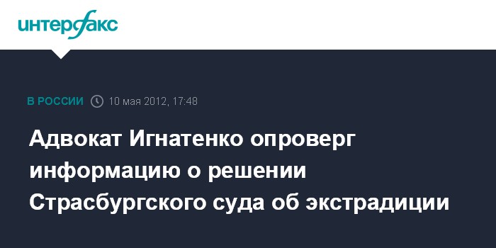 Он добавил, что появившаяся несколько дней назад в ряде СМИ информация о том, что Страсбургский суд принял решение не приостанавливать экстрадицию Игнатенко, не соответствует действительности.