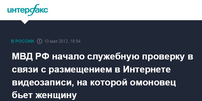 Москва.10 мая. INTERFAX.RU - Главное управление МВД РФ по Москве начало служебную проверку в связи с появлением в Интернете видеосъемки, на которой человек в форме сотрудника ОМОН бьет женщину.