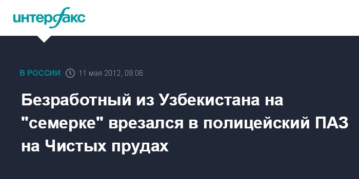 Москва. 11 мая. INTERFAX.RU - Гражданин Узбекистана, находясь за рулем "Жигулей", столкнулся с автобусом столичной полиции в центре Москвы, сообщили "Интерфаксу" в в пятницу в пресс-службе столичного ГУ МВД России.